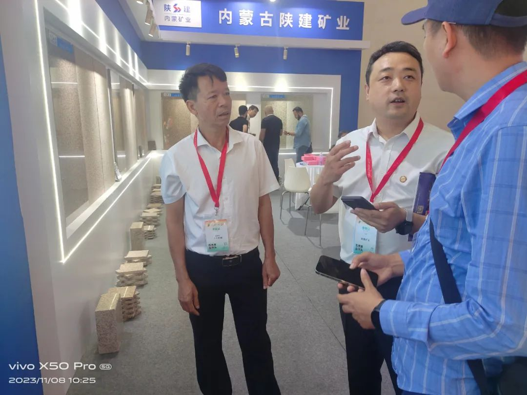 陜建產(chǎn)投集團(tuán)董事長付超鋒一行在參加石材展期間,專門蒞臨公司展臺,詳細(xì)了解了參展、布展及銷售情況,鼓勵礦業(yè)公司要利用好展會這個平臺,廣開眼界、廣長見識、廣交朋友,積極向國內(nèi)外客商推介好礦業(yè)公司產(chǎn)品。同時,要求陜建礦業(yè)公司要堅持以市場為導(dǎo)向,精益求精打造產(chǎn)品、無微不至做強(qiáng)服務(wù),切實做到選者放心、用者安心。