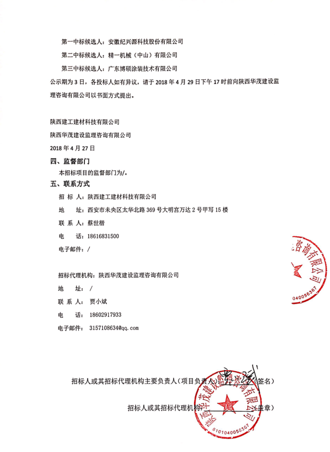 陜西建工建材科技有限公司涂裝板生產(chǎn)線項目設(shè)備采購中標(biāo)公示