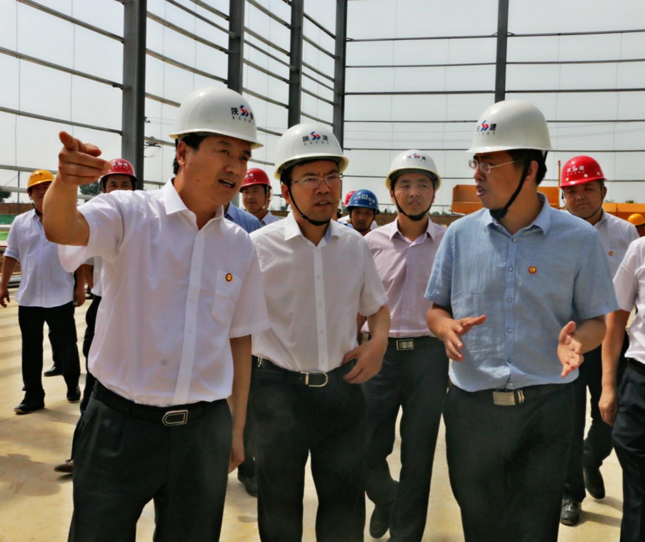 陜建投資集團(tuán)董事長(zhǎng)李衛(wèi)軍(左一)、總經(jīng)理張朝輝(右一)陪同陜建集團(tuán)總經(jīng)理張義光(中)實(shí)地調(diào)研