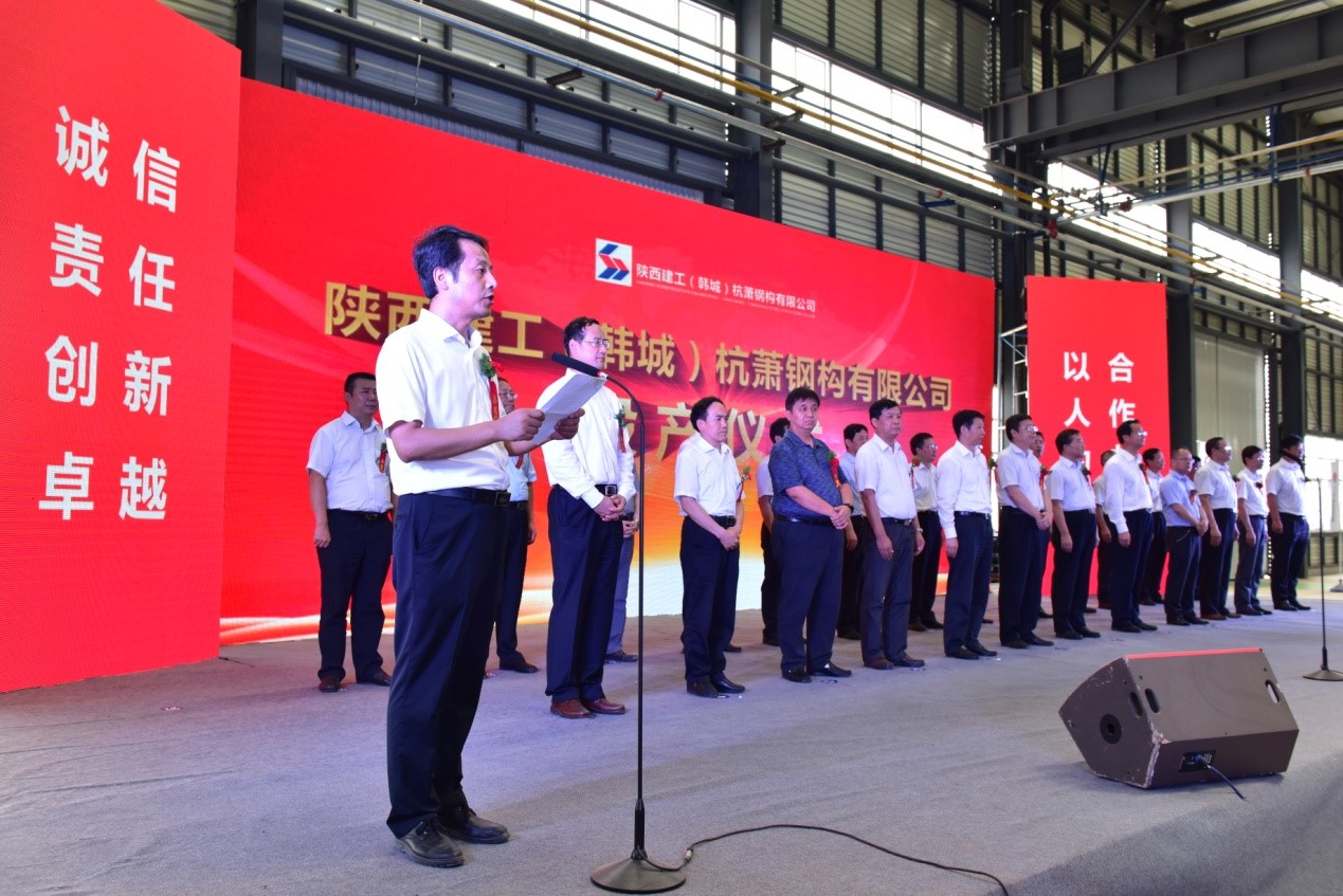 陜建投資集團副總經(jīng)理、陜建(韓城)杭蕭鋼構有限公司董事長蘇寶安參加儀式并致感謝辭