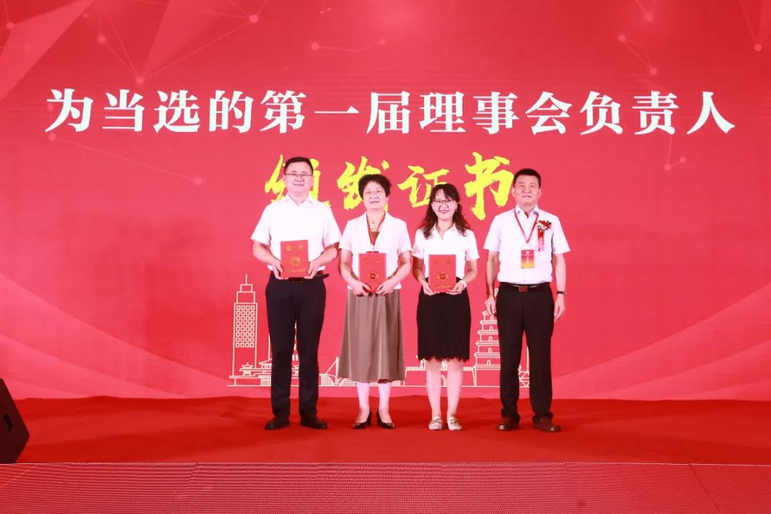 相關(guān)領(lǐng)導(dǎo)為當(dāng)選的第一屆理事會負(fù)責(zé)人頒發(fā)證書。