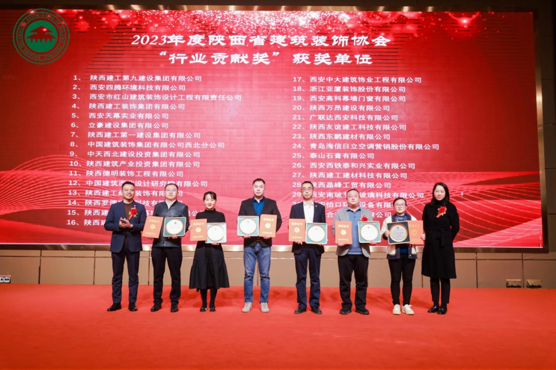會(huì)議對(duì)建筑行業(yè)2023年度作出突出貢獻(xiàn)的優(yōu)秀建筑企業(yè)進(jìn)行了表彰,陜西建筑產(chǎn)業(yè)投資集團(tuán)及所屬企業(yè)陜建新型建材公司、陜建建材科技公司、內(nèi)蒙礦業(yè)公司分別榮獲陜西省建筑節(jié)能協(xié)會(huì)優(yōu)秀會(huì)員單位獎(jiǎng)、科技創(chuàng)新企業(yè)獎(jiǎng),陜西省建筑裝飾協(xié)會(huì)行業(yè)貢獻(xiàn)獎(jiǎng)、愛心企業(yè)獎(jiǎng)等獎(jiǎng)項(xiàng),其中付超鋒、佀偉、樊航、趙楚軍、高凱榮獲“優(yōu)秀個(gè)人獎(jiǎng)”。