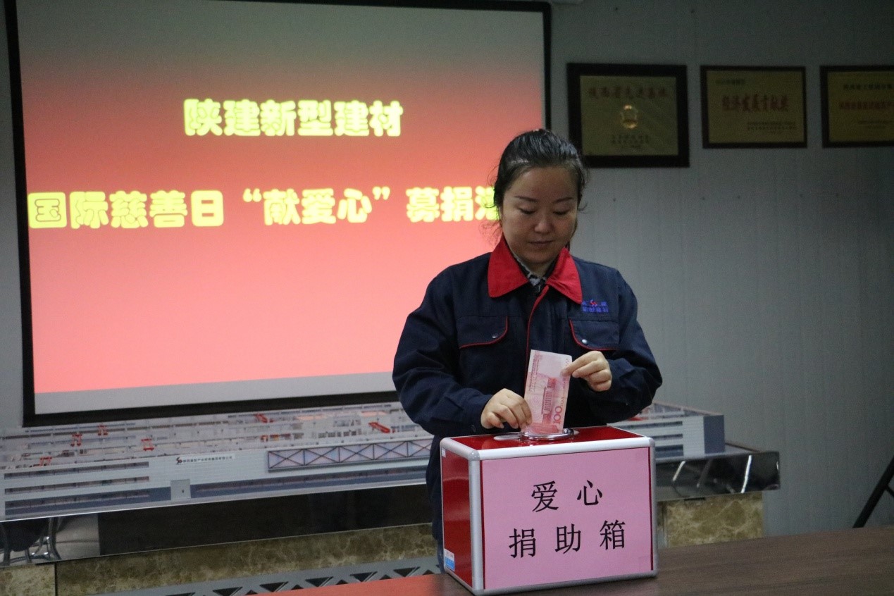 9月5日是國(guó)際慈善日,上午10點(diǎn),新型建材公司舉行了獻(xiàn)愛(ài)心捐款活動(dòng)。
